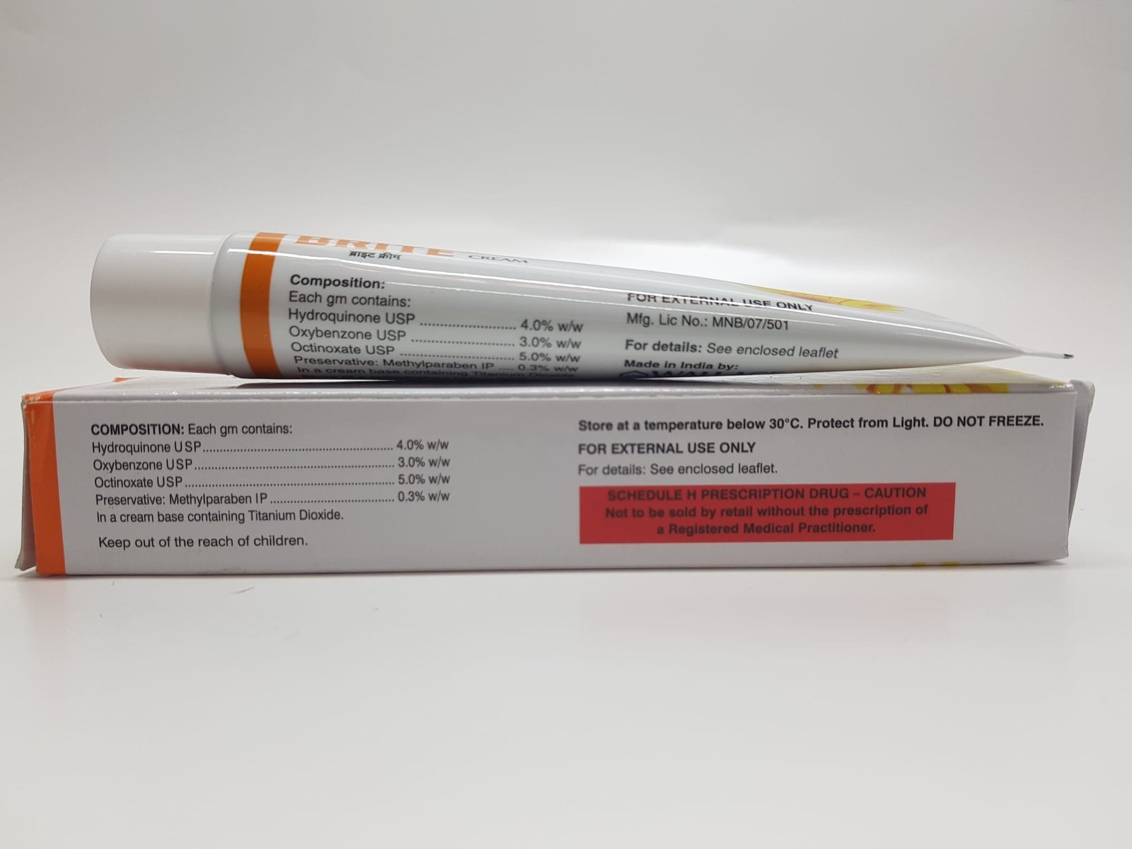 Hydroquinone works by reducing melanin production, gradually fading discoloration and blemishes, while Octinoxate and Oxybenzone absorb UV rays to prevent further pigmentation and sun damage. Suitable for external use, Brite Cream is ideal for restoring an even-toned, radiant complexion when used consistently and as directed.