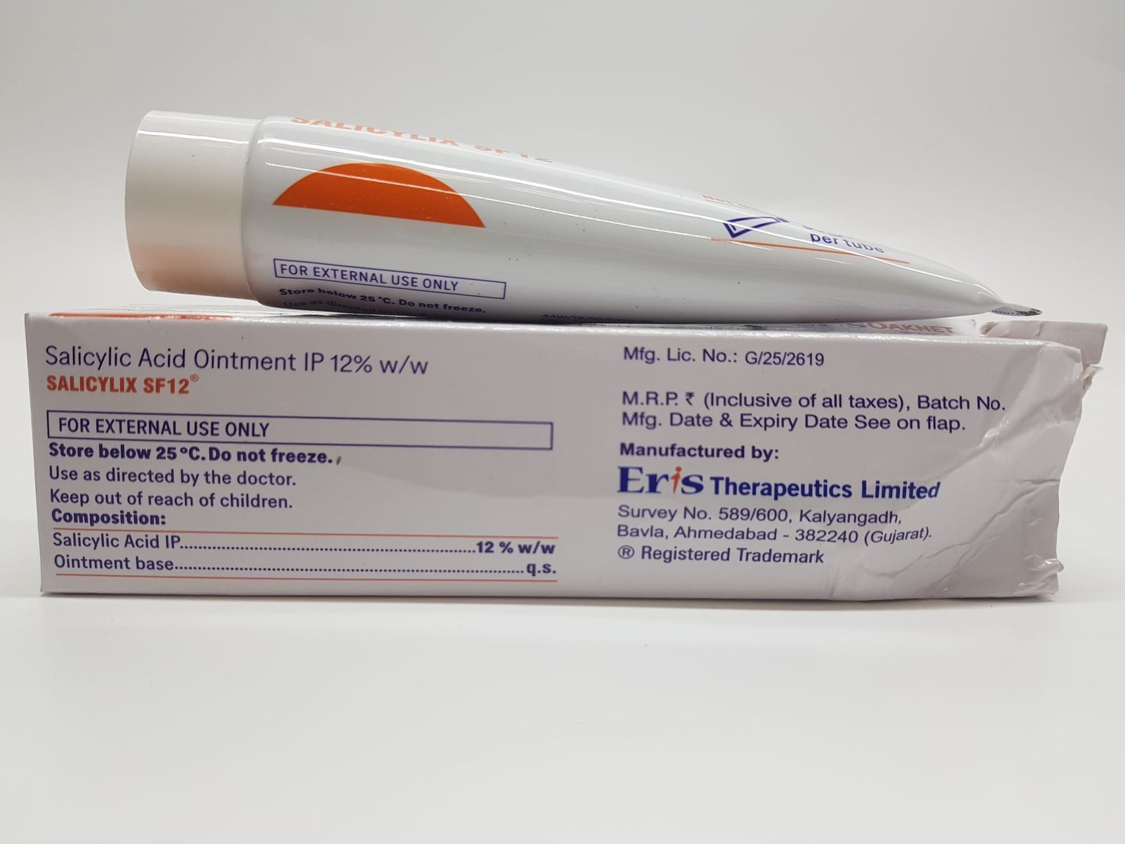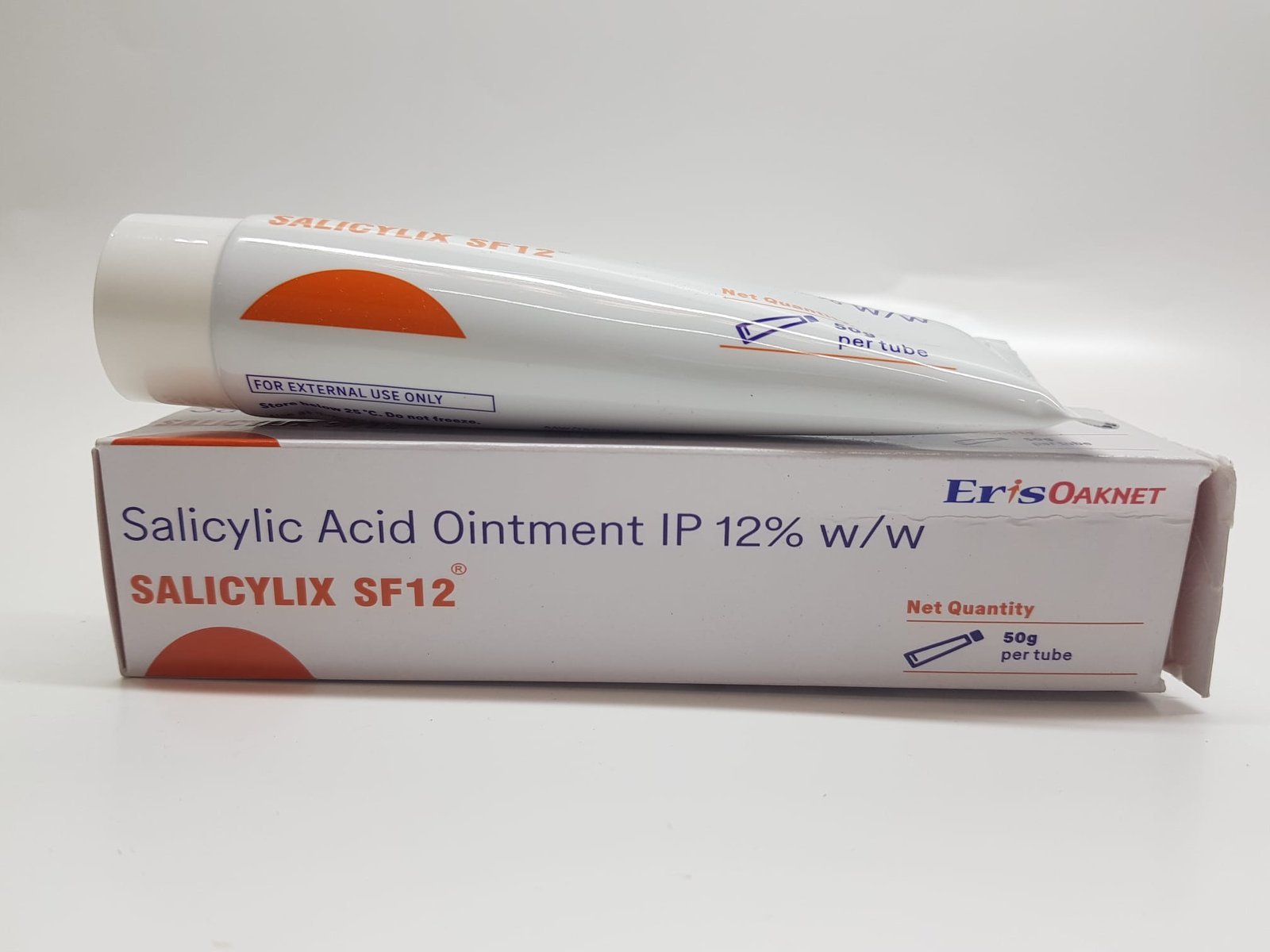 Salicylix SF12 Ointment contains 12% w/w Salicylic Acid, a potent keratolytic agent that deeply exfoliates the skin, unclogs pores, and treats acne, blackheads, and sun tan. This high-strength formulation is specially designed for oil control, pore minimization, and improving skin texture.