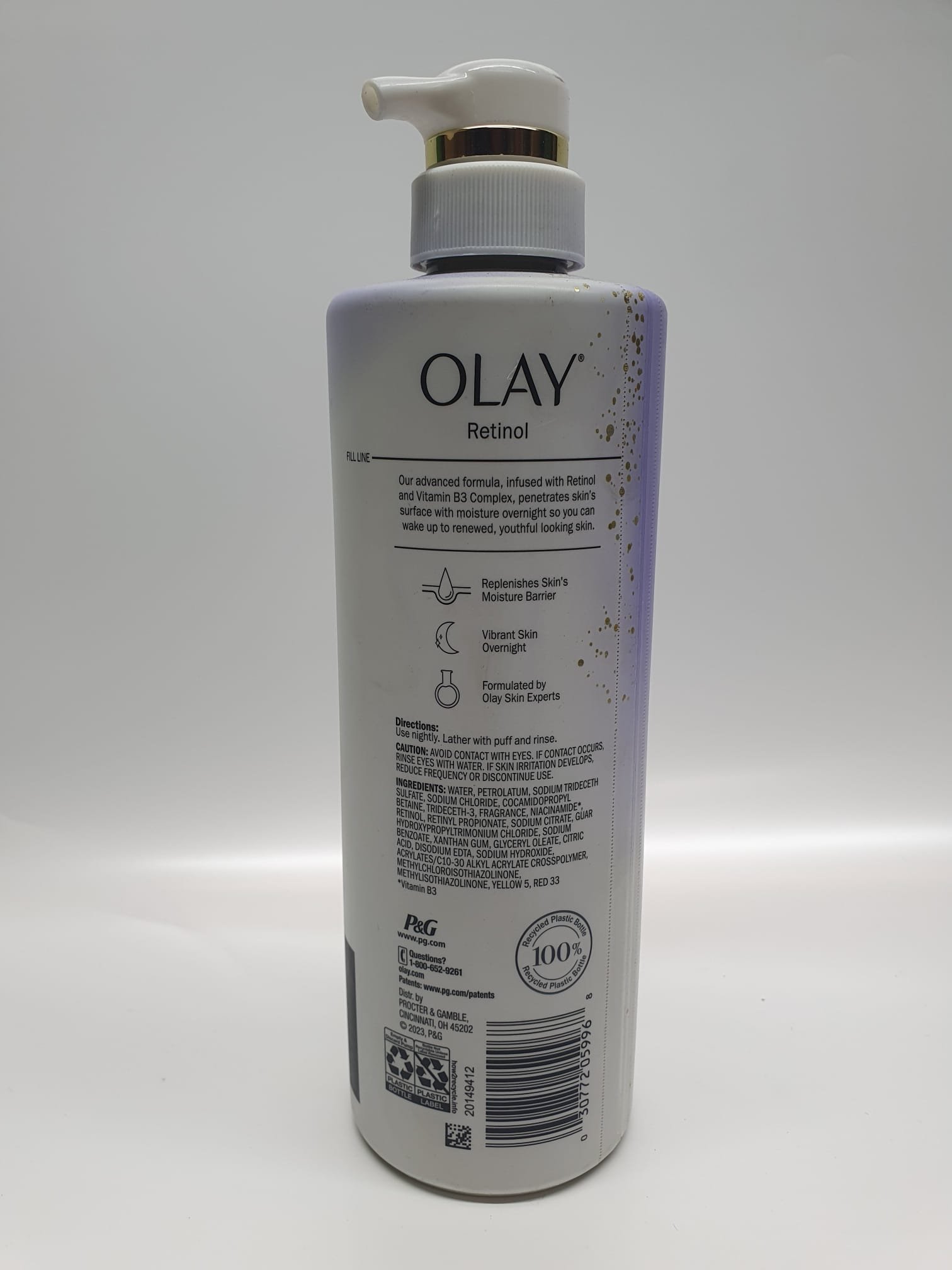 Olay Retinol 24HR Moisturizing Body Wash is expertly formulated with Retinol and Vitamin B3 Complex to replenish the skin’s moisture barrier and deliver vibrant, youthful-looking skin overnight. This luxurious body wash hydrates as you cleanse, helping to smooth texture and promote skin renewal while you sleep.