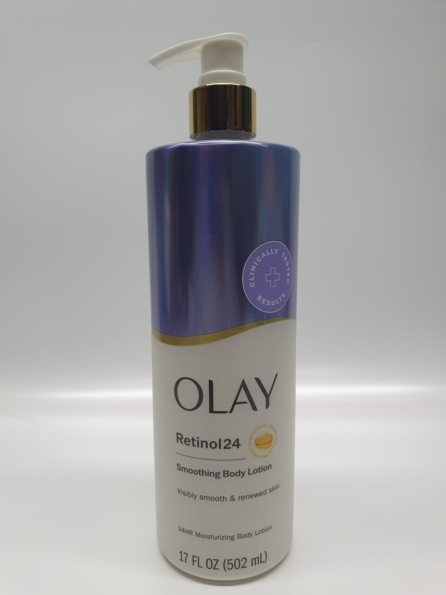Olay Retinol24 Body Lotion deeply hydrates and visibly renews skin. Fast-absorbing formula with Retinol and Vitamin B3 Complex delivers smooth, moisturized skin for up to 24 hours.