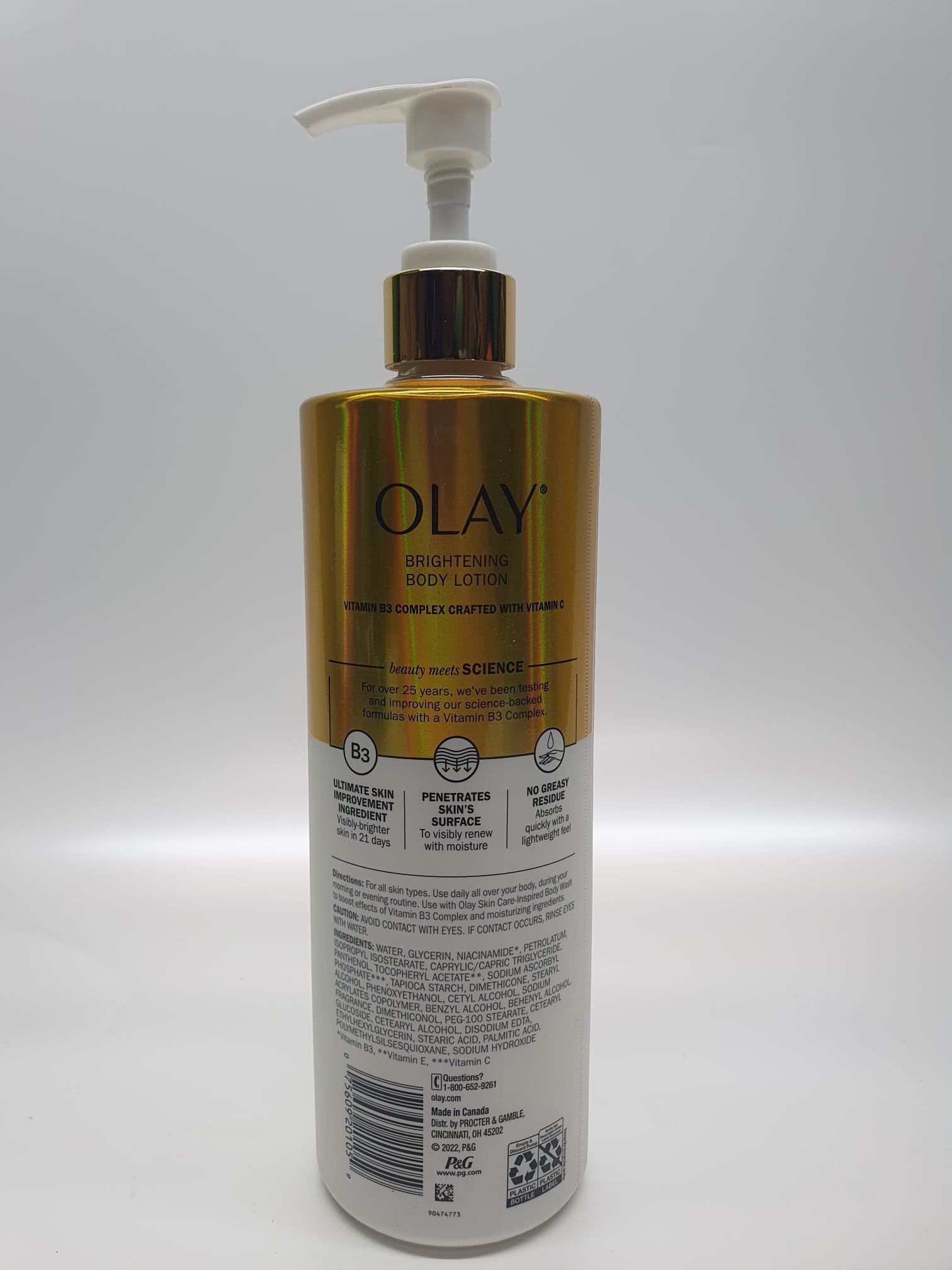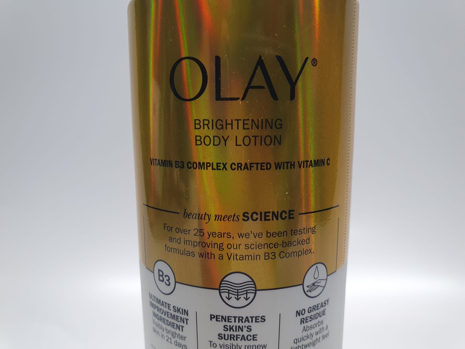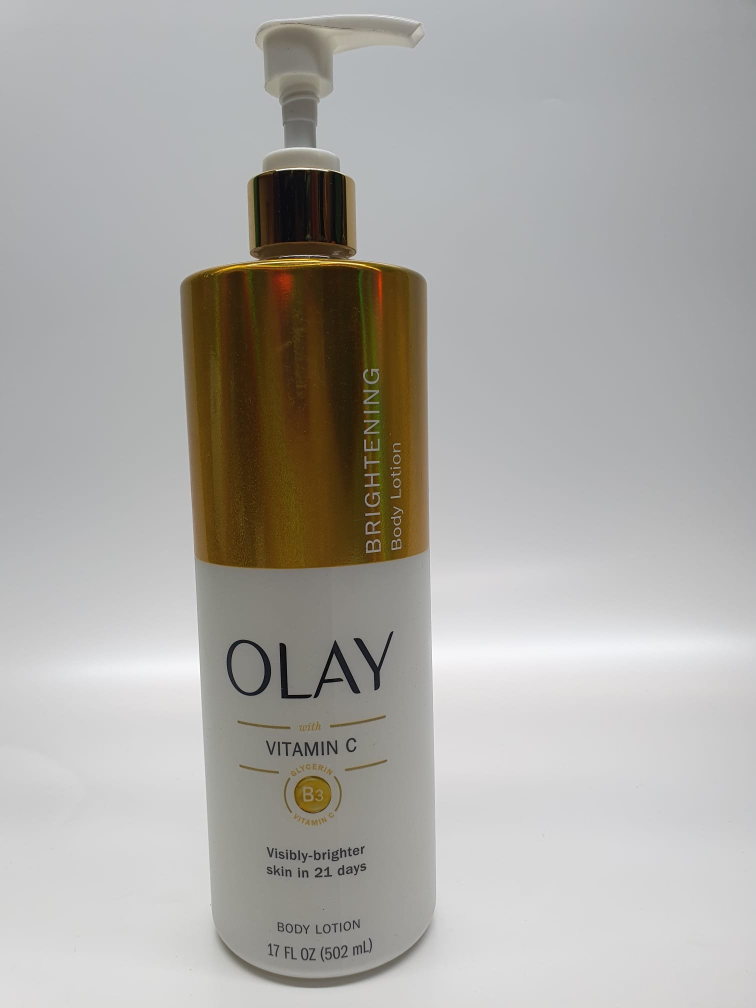 Olay Vitamin C Body Lotion visibly brightens skin in 21 days while deeply hydrating with B3 Complex and Vitamin C.